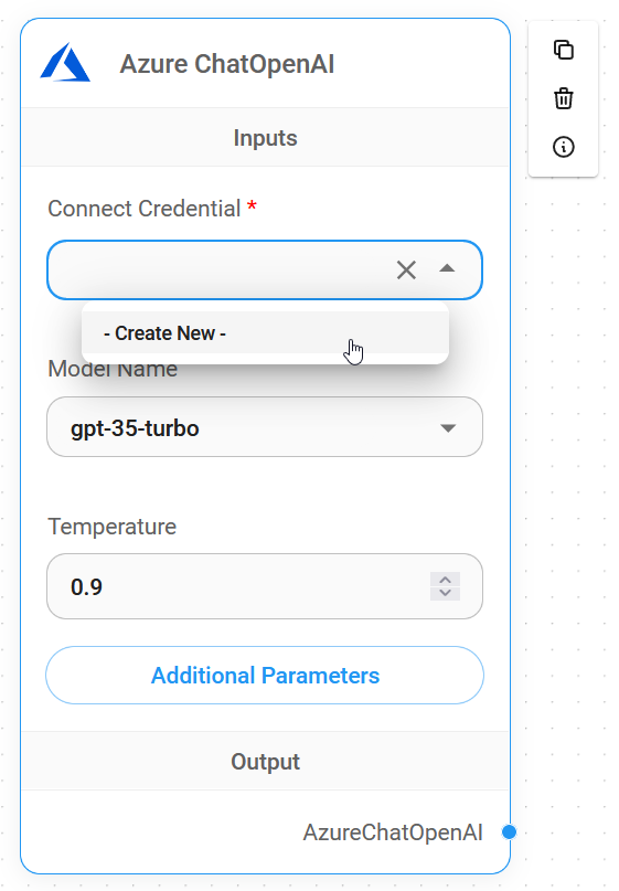 - Copy & Paste each details (API Key, Instance & Deployment name, API Version) into Azure ChatOpenAI credential