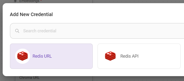 - Select type of Redis Credential. Choose Redis API if you have username and password, otherwise Redis URL: