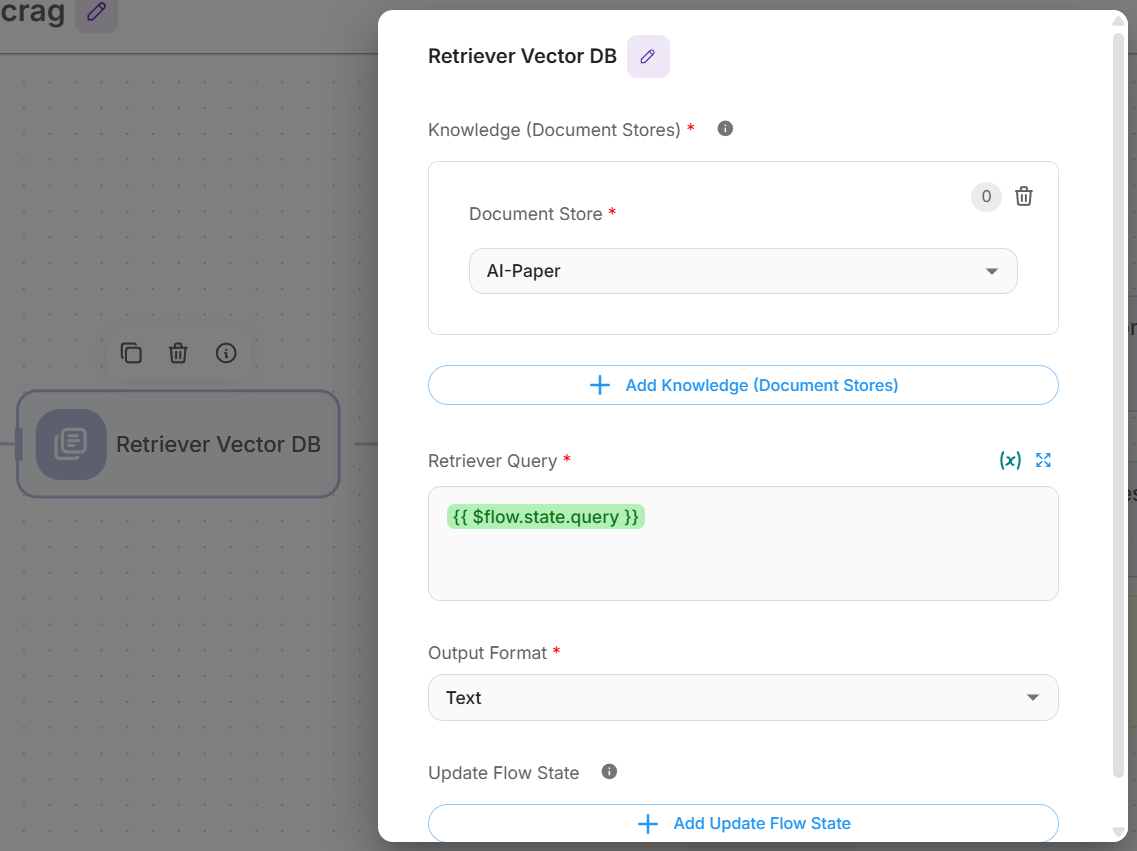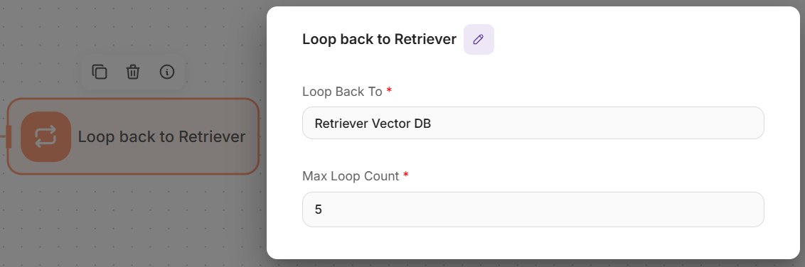 - Loop Back To: Select "retrieverAgentflow_0-Retriever Vector DB"