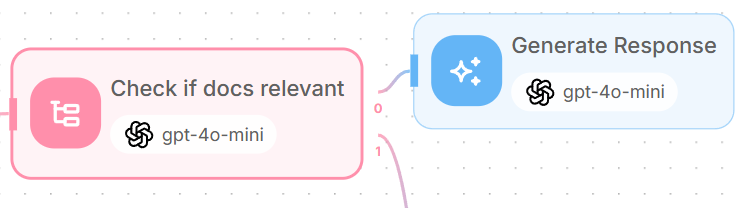 For relevant documents, add an LLM node connected to output 0 of the relevance checker - which is when the scenario "Relevant" is matched.