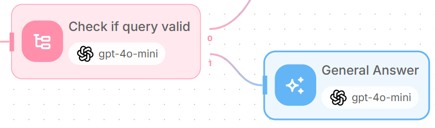 For AI-related queries, add an LLM node connected to output 0 of the condition agent - which is the scenario for "AI-related".