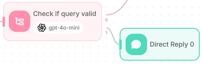 This provides direct responses for general queries without requiring document retrieval. You can also replace with Direct Reply node to return a predefined answer.