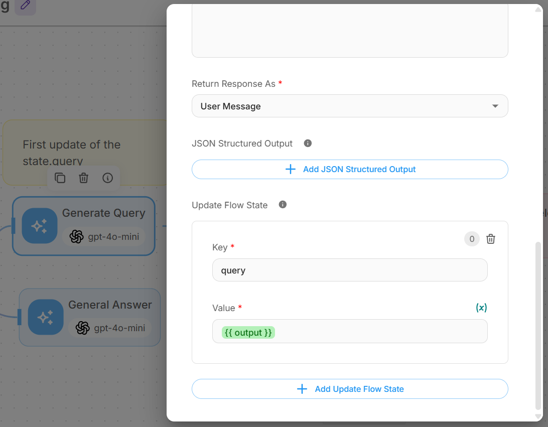 Look at the input and try to reason about the underlying semantic intent / meaning. Here is the initial question: {{ $flow.state.query }} Formulate an improved question:- Update Flow State: Set key "query" with value