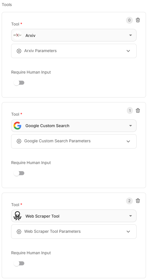 Subagent has access to web search, web scrape, and arxiv tools.
