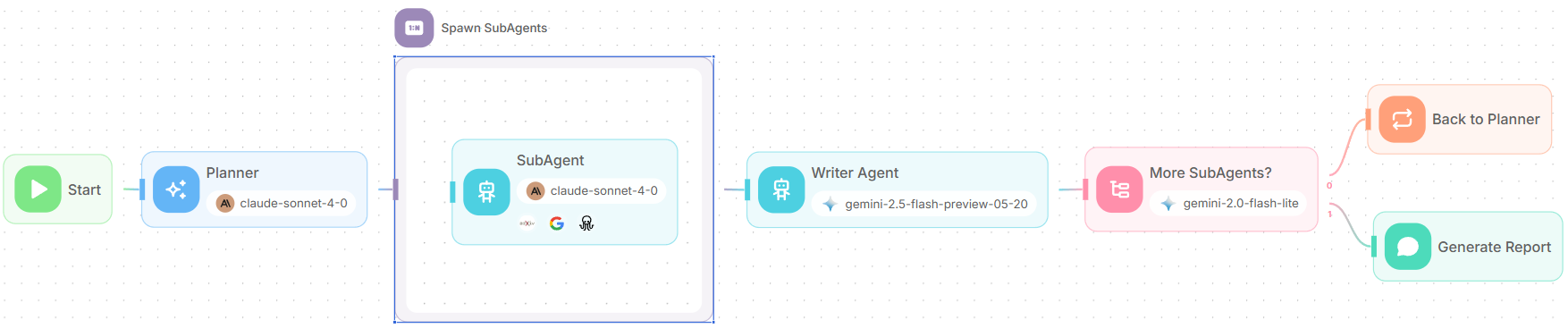 - ๐ Loop back to Planner Agent to generate more subagents