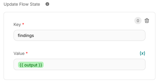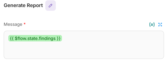 {{ $flow.state.findings }}with the output of Write Agent.