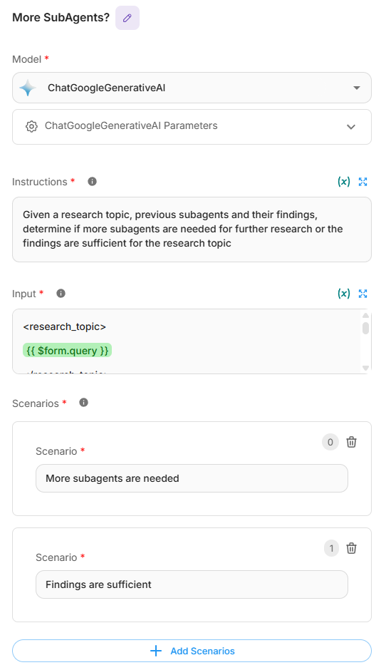 - Condition Agent: Determines if additional research is needed or if the findings are sufficient