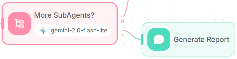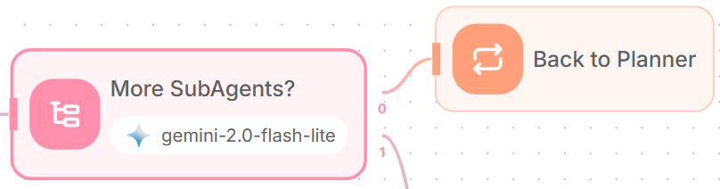 - For the "More subagents needed" path, add a Loop node