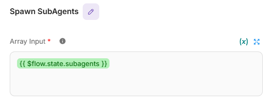 {{ $flow.state.subagents }}. For each item in the array, a subagent will be spawned to carry out the research task. Example:
