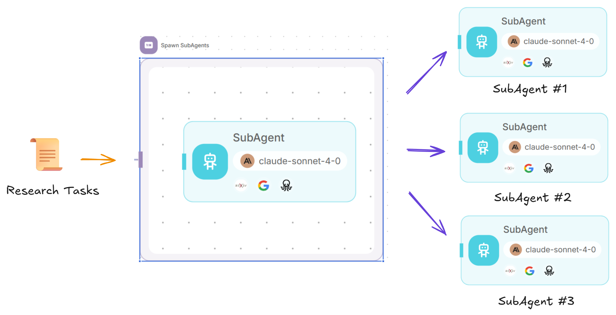For each task in the tasklist, a new subagent will be spawned to conduct focused research.