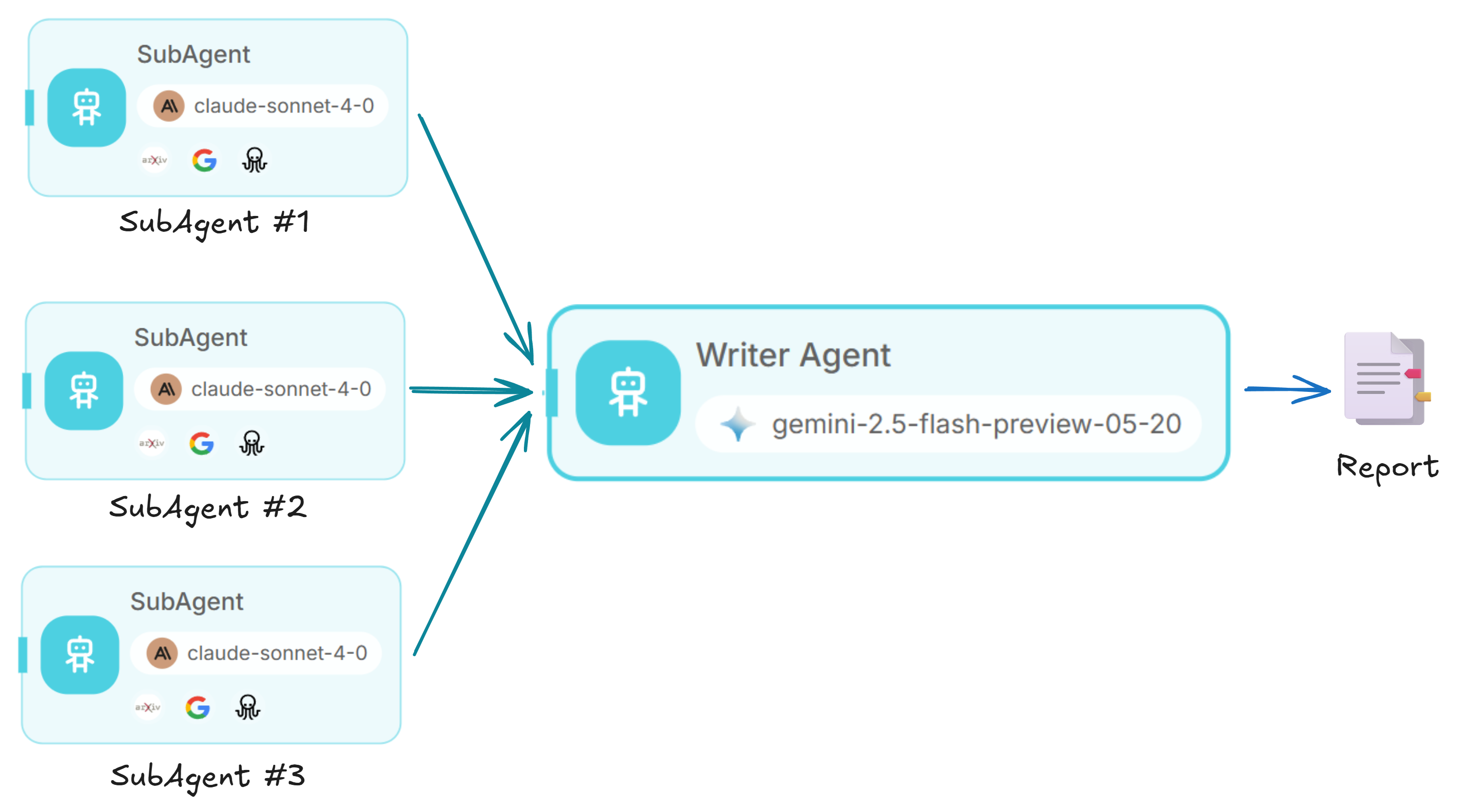 - Writer Agent: Synthesizes all findings into a coherent, comprehensive report
