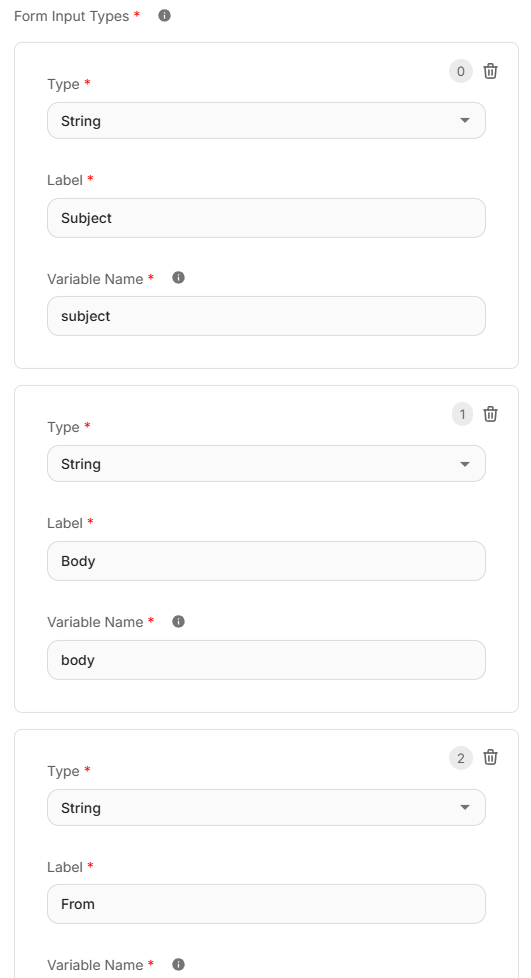 - Input Type: Select "Form Input" to capture structured email data