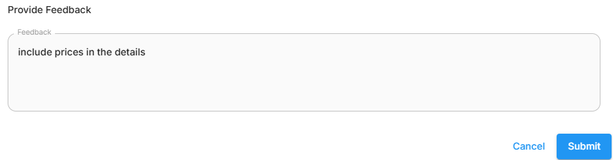 - Reject the response and provide more feedback: