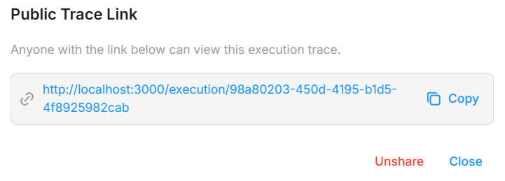 - The execution trace is now available as a public link. You can share this link with others for review.