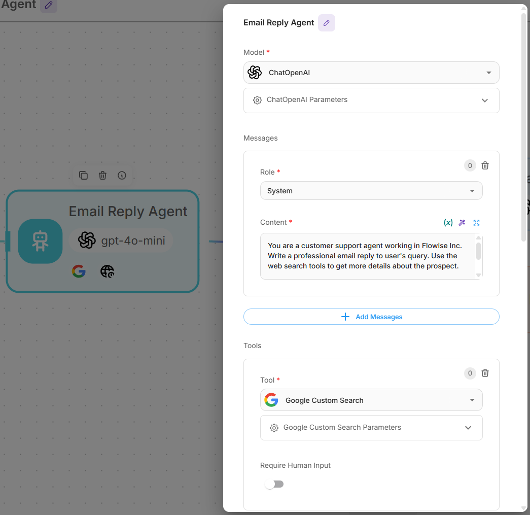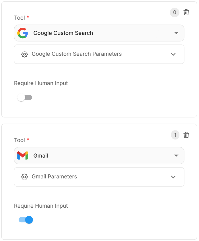 - Enable Require Human Input for Agent's tools