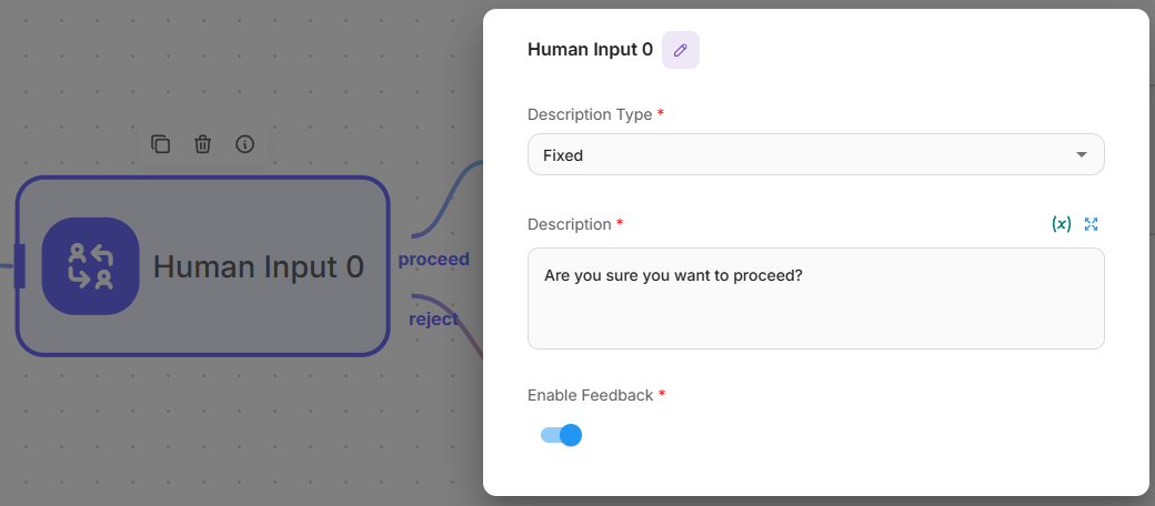 - Require Human Input: ✅ Enable this option - This is the key feature that creates the HITL functionality