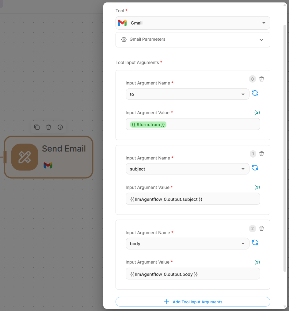 - Tool: Select "Gmail" from the available tools