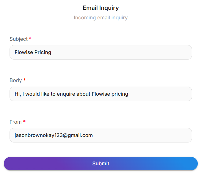 Start the workflow by filling out the form with a sample email inquiry