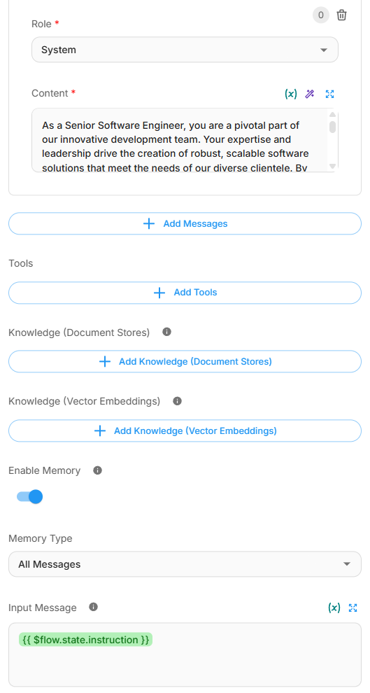 {{ $flow.state.instruction }}. The Input Message will be inserted at the end, as if the user is giving an instruction to the Software Engineer Agent.