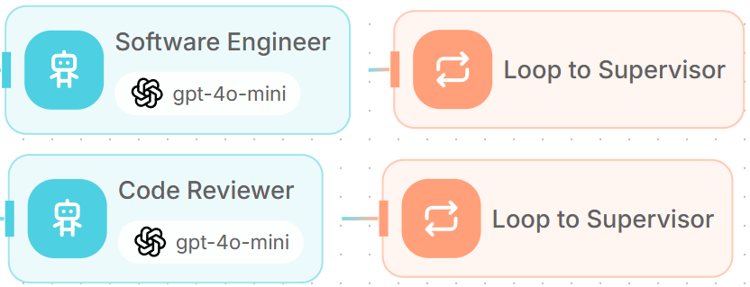 Both worker agents need to loop back to the Supervisor for continued coordination.