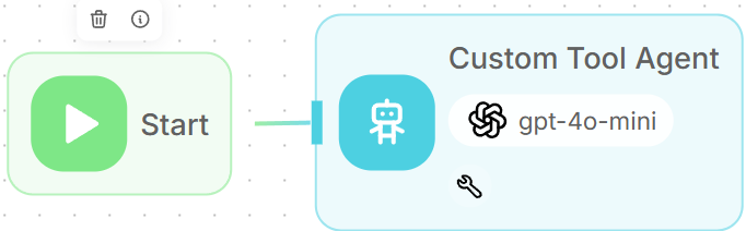 After custom tool has been created, you can use it on the Agent node.
