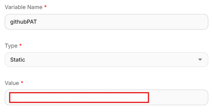 Step 1: Create a variable for Github PAT