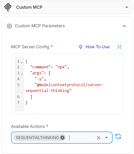 Apart from the prebuilt MCP tools, the most powerful feature is Custom MCP, which allows users to connect to any MCP server of their choice.